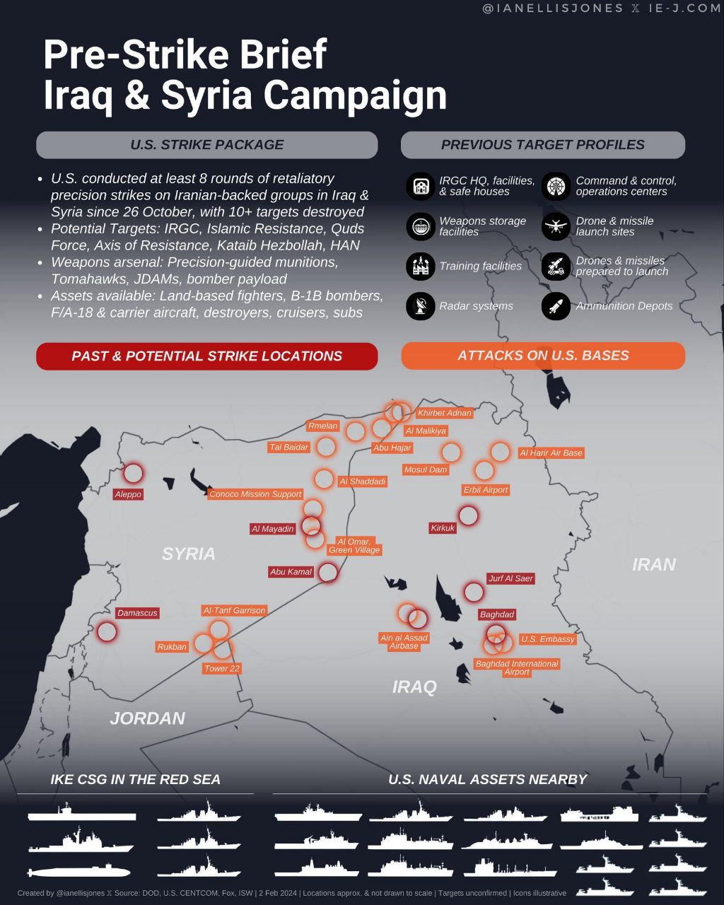 Президент США Джо Байден 8 декабря 2022 года заявил, что отдал приказ нанести авиаудары по объектам на территории Ирака и Сирии, используемым для нападения на американские войска. По его словам, Иран может предпринять попытку нанести ответный удар, и в этом случае США могут предпринять аналогичные действия. Это заявление вызвало опасения о возможном военном конфликте между двумя странами.