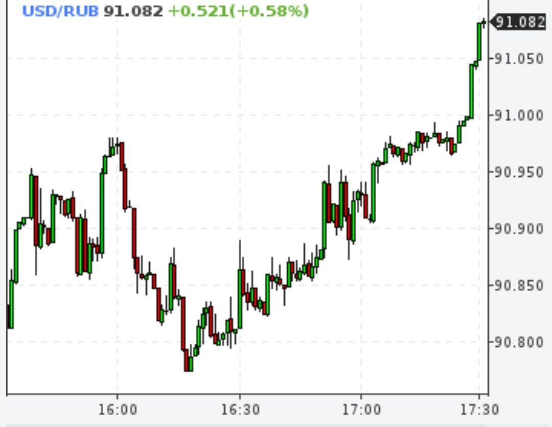 Доллар преодолел рубеж в 91 рубль впервые с 12 сентября 2022 года. Курс доллара на Московской бирже по состоянию на 11:24 мск достиг 91,03 рубля, что на 1,96 рубля выше уровня закрытия предыдущих торгов. Евро также подорожал, его курс достиг отметки в 100,44 рубля, увеличившись на 2,78 рубля.