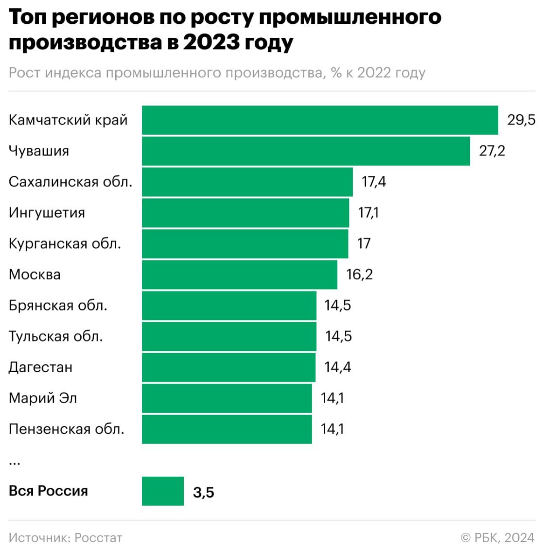 Согласно данным Росстата, в 2023 г. рост промышленного производства в стране превысил средний показатель по стране и составил 3,5% в среднем по регионам.