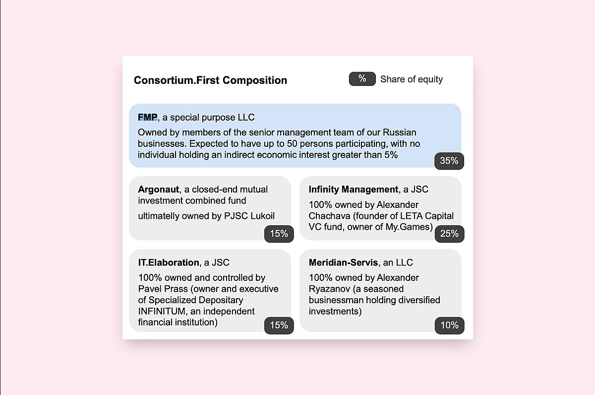 Менеджеры «Яндекса» получат 35 % акций в закрытом паевом инвестиционном фонде «Консорциум. Первый», который станет основным владельцем компании.