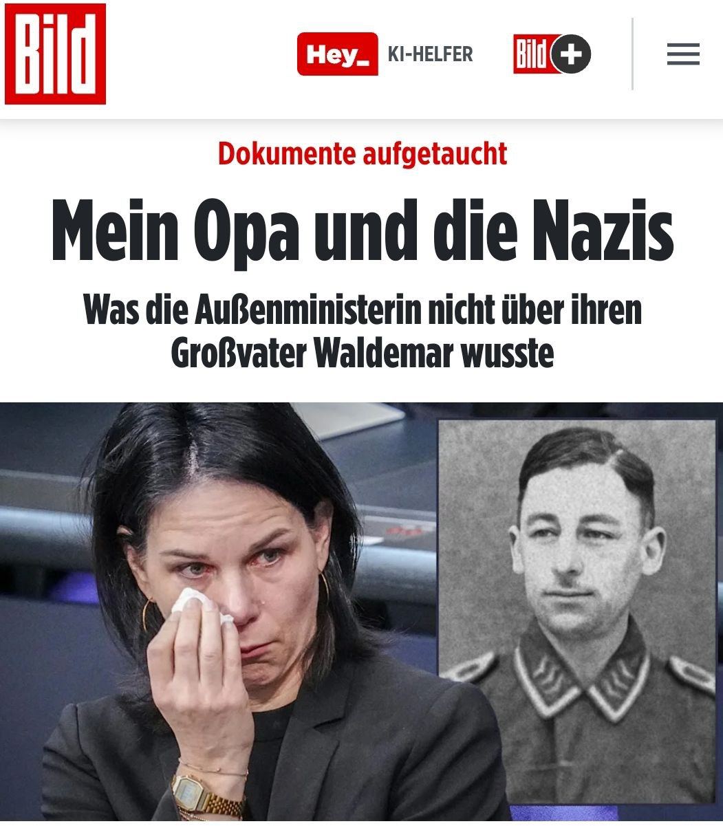 Немецкая газета Bild опубликовала информацию о том, что дед министра иностранных дел Германии Анналены Бербок, по некоторым данным, служил в вермахте. Это вызвало широкий резонанс в обществе, так как в Германии многие считают службу в вермахте постыдной и связанной с преступлениями нацистов. Информация о службе в вермахте вызывает определённые вопросы о моральных убеждениях и взглядах Анналены Бербок: некоторые считают, что это может вызывать сомнения в её политических взглядах и способности занимать высокие посты в политической системе Германии.