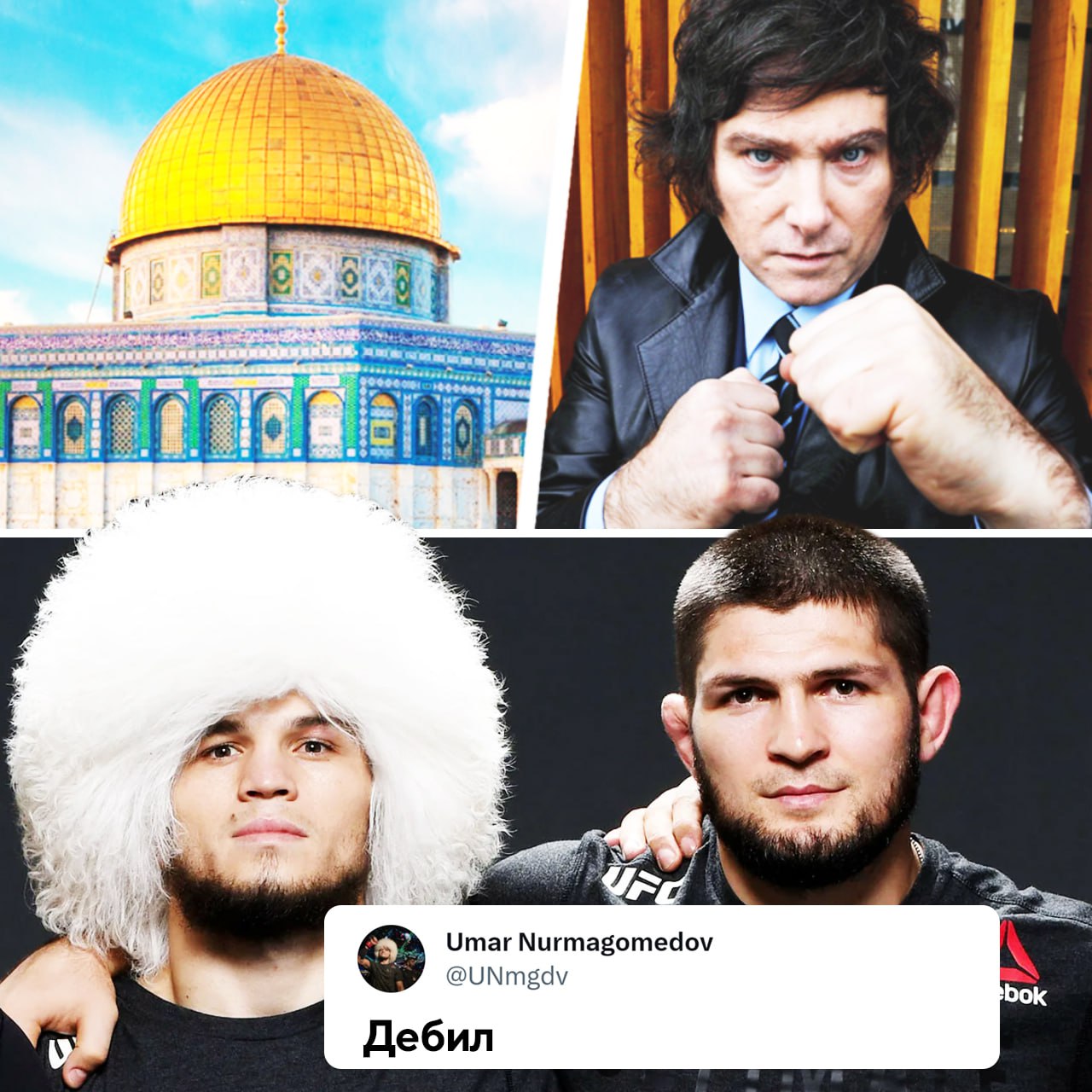 Умар Нурмагомедов, член российского клана бойцов ММА, известный своими политическими высказываниями, отреагировал на предложение, сделанное президентом Аргентины Хавьером Мерелем, о сносе одной из самых почитаемых святынь Ислама — мечети Аль-Акса. Свое мнение он выразил в резкой форме: «Дебил».