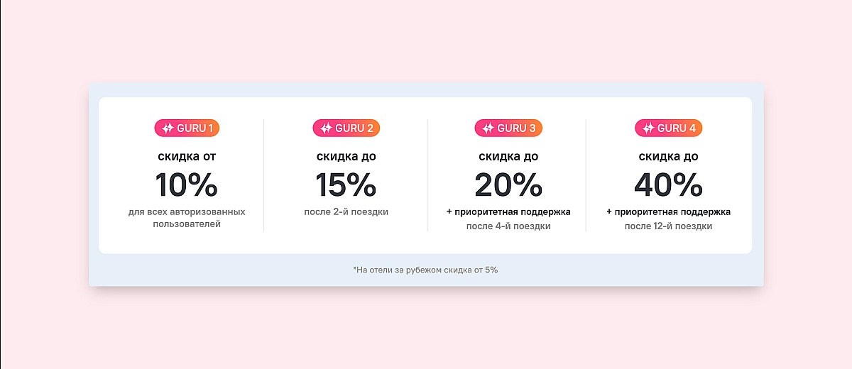 Программа делится на четыре уровня со скидками на бронирование отелей от 10 % до 40 %.