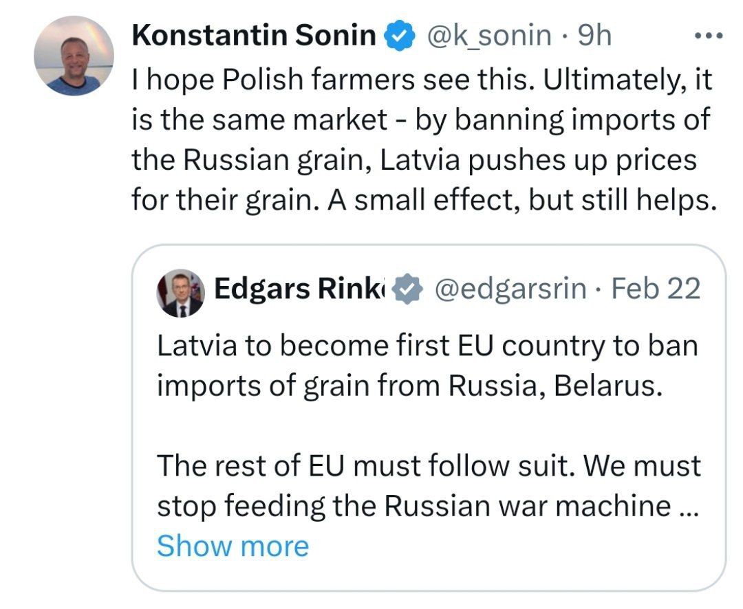 Кроме того, Константин Сонин может быть подвержен критике за его инициативу, так как она может рассматриваться как проявление недружественного отношения к России и как попытка оказать давление на российских производителей и экспортеров.