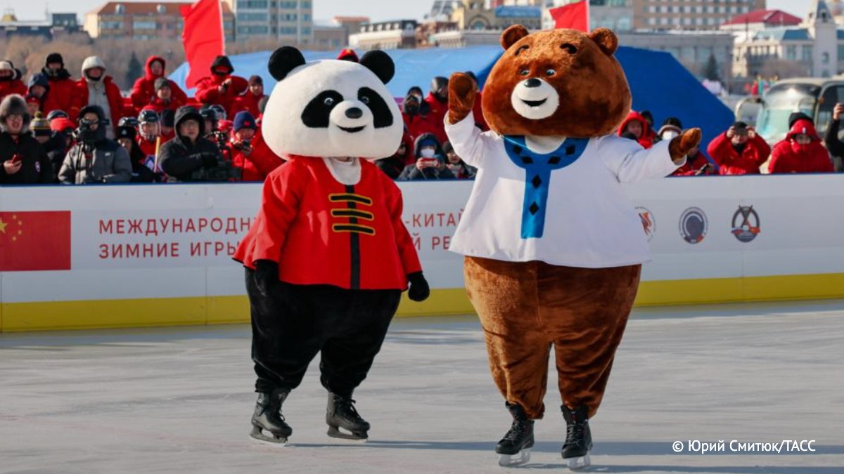 40 художников России и Китая совместными усилиями создали уникальную открытку, которая, как полагают её создатели, должна подчеркнуть дружественный дух отношений между РФ и КНР. На этом креативном холсте изображены два больших зверя, олицетворяющих Россию и Китай, — бурый медведь и большая панда, играющие в хоккей на льду Амура.