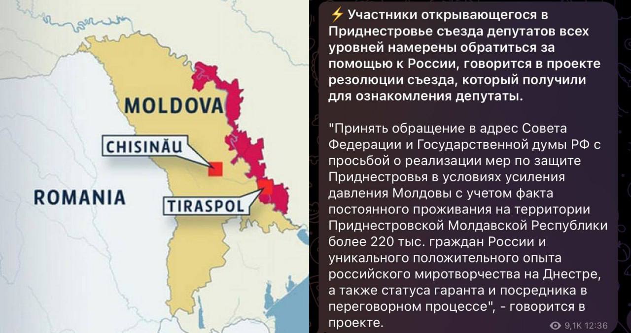 Приднестровская Молдавская Республика (ПМР), непризнанное государство на территории Молдавии, обратилось к Российской Федерации с просьбой о защите от давления со стороны Кишинёва. Это произошло на фоне роста напряжённости в отношениях между Кишинёвом и Тирасполем. Приднестровье, где находится более 220 тыс. граждан РФ, просит Москву предпринять шаги для обеспечения безопасности в этом регионе.