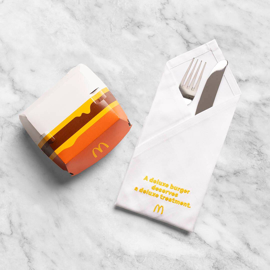 В феврале 2024 г. сеть ресторанов быстрого питания McDonald’s запустила линейку бургеров класса премиум под названием Deluxe, а также сопутствующие товары. В эту линейку вошли брендированные серебряные столовые приборы, что вызвало резонанс среди любителей фастфуда.