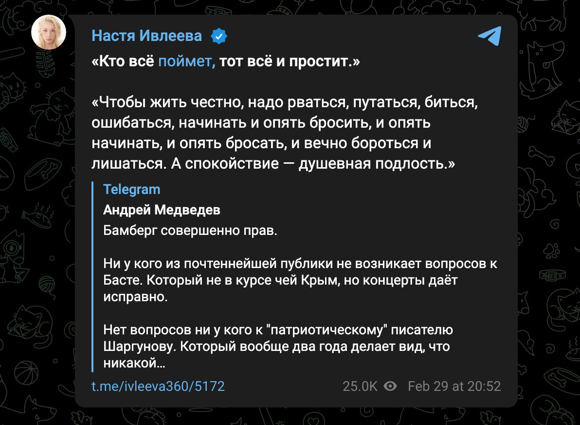 Пост Насти Ивлеевой: что стоит за намёками?