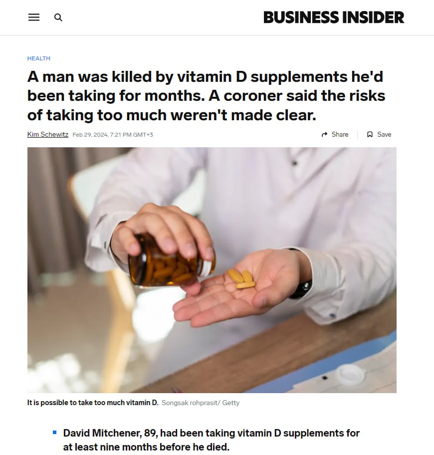 Житель Британии умер после длительного употребления обычных витаминов. Мужчина на протяжении 9 месяцев принимал витамин D.