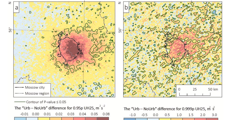 Если вы когда-либо замечали, что в городе дожди идут чаще и интенсивнее, чем в сельской местности, то вы не одиноки. Москва и другие крупные города действительно могут оказывать влияние на погоду и климат.Учёные из России и Швейцарии провели исследование, чтобы выяснить, как именно городская застройка может влиять на атмосферную конвекцию. В исследовании использовались данные о погоде в Москве за 2016 год, а также информация о городской застройке, предоставленная Московским центром по гидрометеорологии и мониторингу окружающей среды с региональными функциями (Росгидромет). Для анализа были использованы данные о количестве и плотности городской застройки, а также о высоте зданий.Исследователи обнаружили, что городская застройка в Москве усиливает грады (интенсивные ливни с градом), сильные ветры, а также увеличивает вероятность их одновременного появления. Это происходит из-за того, что городская среда изменяет направление и скорость воздушных потоков, что может привести к образованию турбулентных зон и усилению конвективных процессов в атмосфере.Особенно сильно это проявляется в центре Москвы и в северо-восточном направлении. Это связано с тем, что центр Москвы имеет плотную застройку и небольшую площадь, что приводит к усилению воздушных потоков и формированию устойчивых вихрей. Северо-восточное направление также является направлением на возвышенность, что также может способствовать усилению ветров.Кроме того, исследователи обнаружили, что увеличение городской застройки в Москве может привести к увеличению частоты и интенсивности экстремальных погодных явлений, таких как сильные ливни и град. Это может иметь негативные последствия для сельского хозяйства, инфраструктуры и здоровья населения.Исследование показывает, что городская застройка не только изменяет окружающую среду, но и влияет на климат и погоду. Это означает, что при планировании городской застройки необходимо учитывать её влияние на окружающую среду и климат, чтобы избежать негативных последствий.