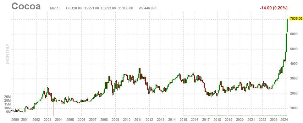 В последние месяцы наблюдается резкий рост цен на какао, вызванный несколькими факторами. В частности, это связано с нехваткой рабочей силы и неблагоприятными погодными условиями в ключевых регионах выращивания какао, таких как Кот-д’Ивуар и Гана. Эти факторы привели к приостановке деятельности ряда крупнейших заводов в этих странах, на которые приходится около половины мирового производства какао. Это, в свою очередь, угрожает стабильности поставок и может привести к дальнейшему росту цен.