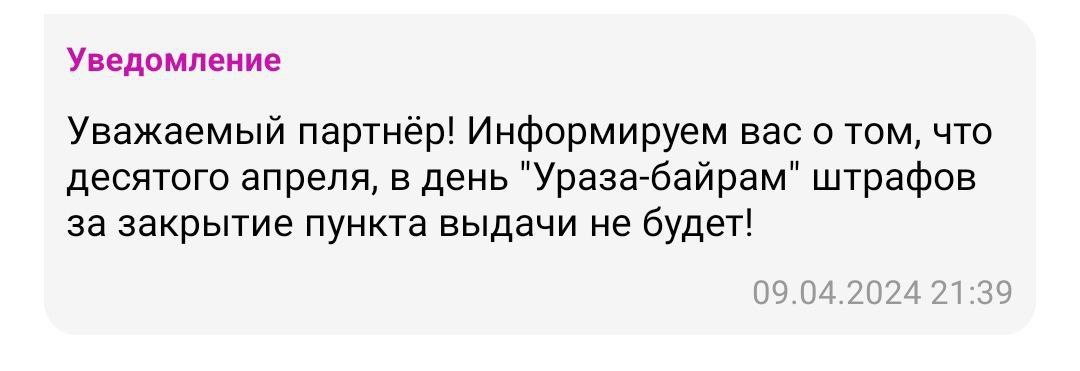 Wildberries сообщил, что разрешил некоторым пунктам выдачи заказов (ПВЗ) закрыться в отдельные выходные дни. Это связано с праздником Ураза-байрам, который отмечают приверженцы ислама в некоторых регионах России.