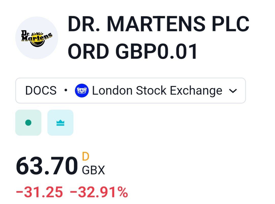 Акции производителя ботинок Dr. Martens рухнули на 32 % и обновили исторический минимум.