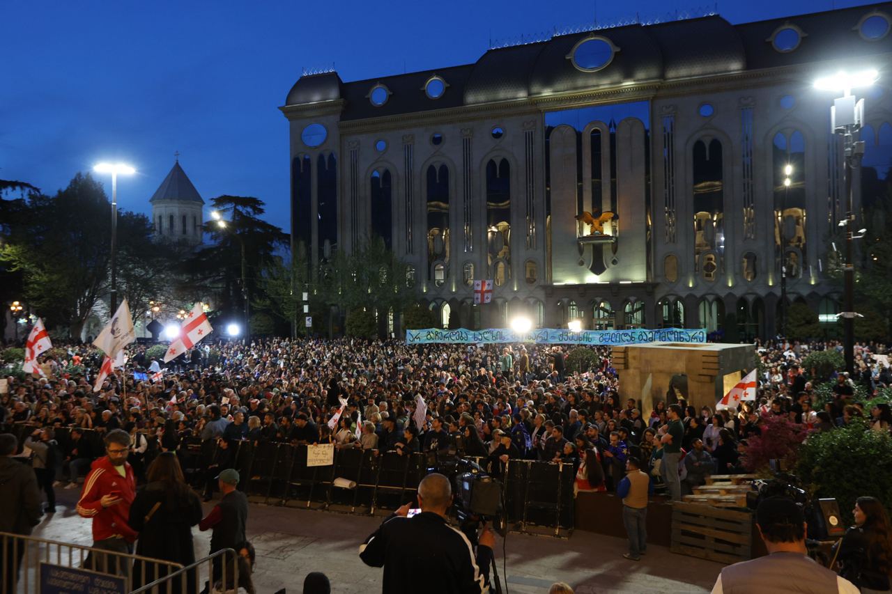 На кадрах, которые распространяются в социальных сетях, видно, как протестующие скандируют лозунги против законопроекта и произносят речи, в которых критикуют правительство Грузии и призывают к отставке премьер-министра Ираклия Гарибашвили. Участники акции призывают других жителей Грузии присоединиться к протестам. На кадрах также видны плакаты с надписями, направленными против законопроекта. Отдельные участники акции держат в руках флаги Грузии и Евросоюза.