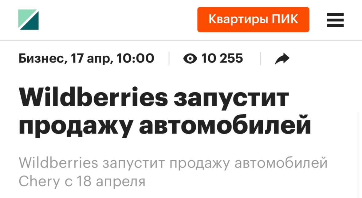 Wildberries запустит продажу китайских автомобилей — первой машиной, которую можно будет купить на маркетпэйсе, станет Chery. На WB будет доступен весь модельный ряд. Заказ на первом этапе можно оформить в большинстве регионов России. Со временем зона доставки будет расширяться.