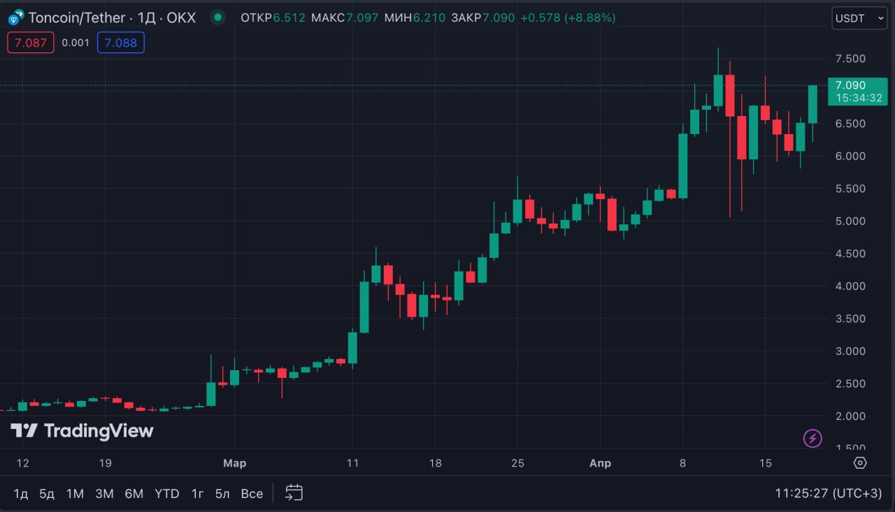 TON снова пробил отметку в 7$, и устремился к новым вершинам! Это связано с предстоящим выступлением Павла Дурова, основателя Telegram, на конференции Token2023, которое состоится 14 февраля 2023 года.
