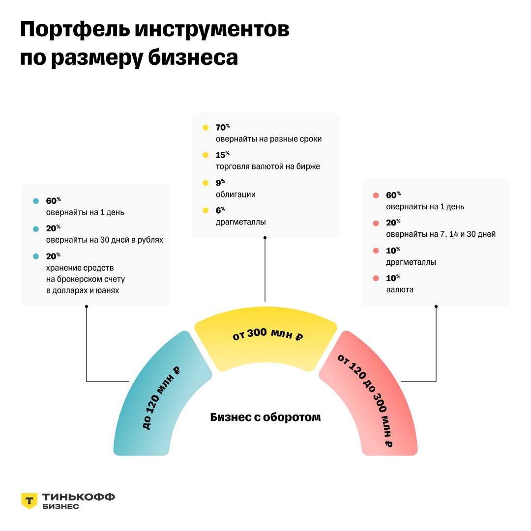 - 300+ млн руб. оборот в год — инвестируют в овернайты, облигации и драгоценные металлы.