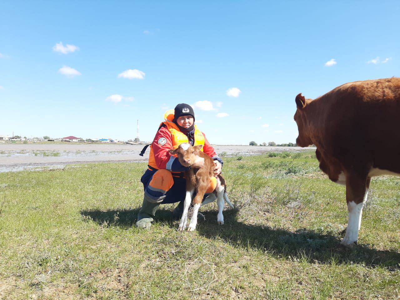 Спасатели из разных регионов Казахстана опубликовали фото и видео о том, как они помогают жителям справиться с последствиями паводков.