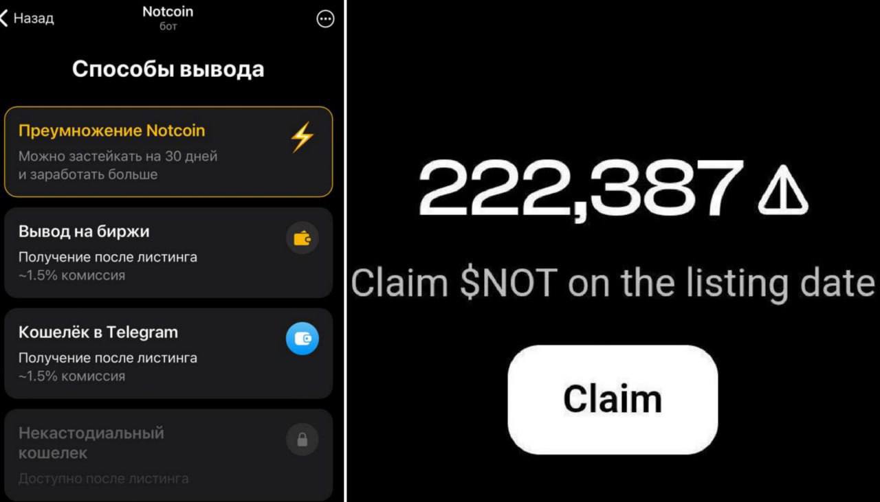 благодаря которому теперь можно вывести NOTcoin на биржи ByBit, Binance, OKX и в кошелёк Telegram. При выводе комиссия составляет 1,5 %.