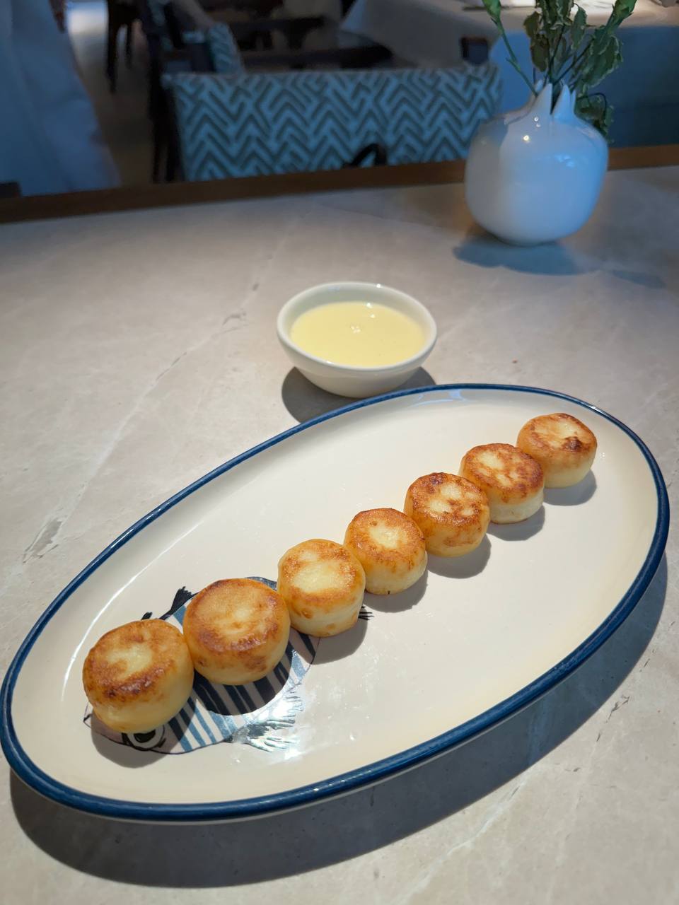 Что касается сырников, то они представляют собой 7 творожных мини-сырных блюд, которые подают с ванильно-заварным кремом. Однако на деле этот «крем»_ скорее жидкий соус, который не держится на сырниках и требует доработки или же замены названия на соус. Стоимость — также 590 ₽ за 7 штук.