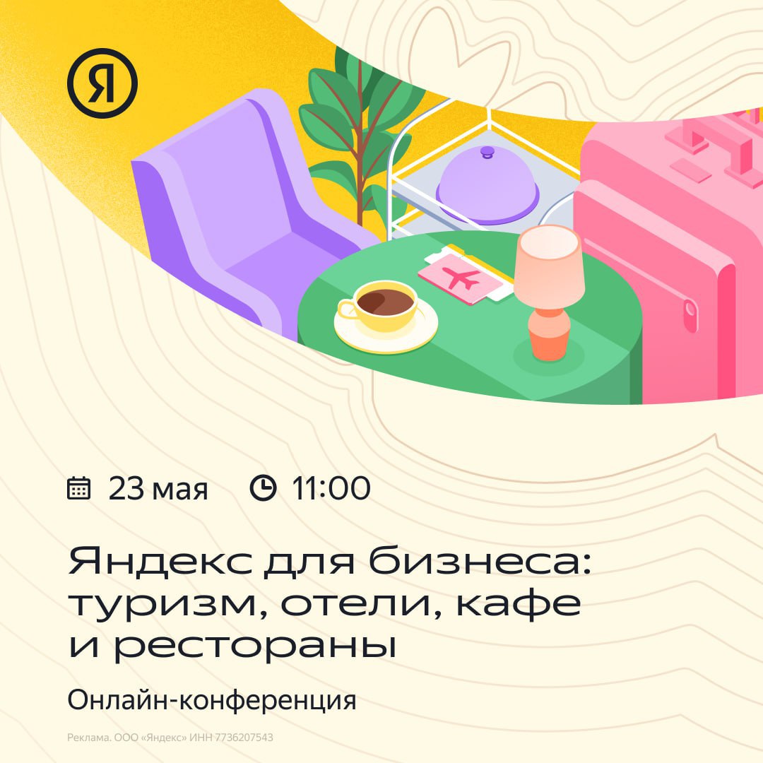 На онлайн-конференции «Яндекс для бизнеса: Туризм, Отели, Кафе и Рестораны» 23 мая в 11:00 (по московскому времени) эксперты Яндекса и приглашённые эксперты поделятся информацией о том, как эффективно продвигать бизнес в сегментах HoReCa и туризма.