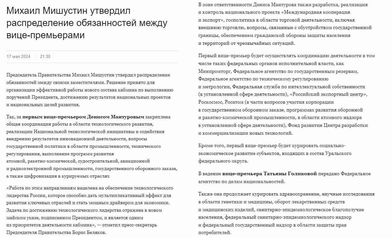 Денис Мантуров — направление деятельности: