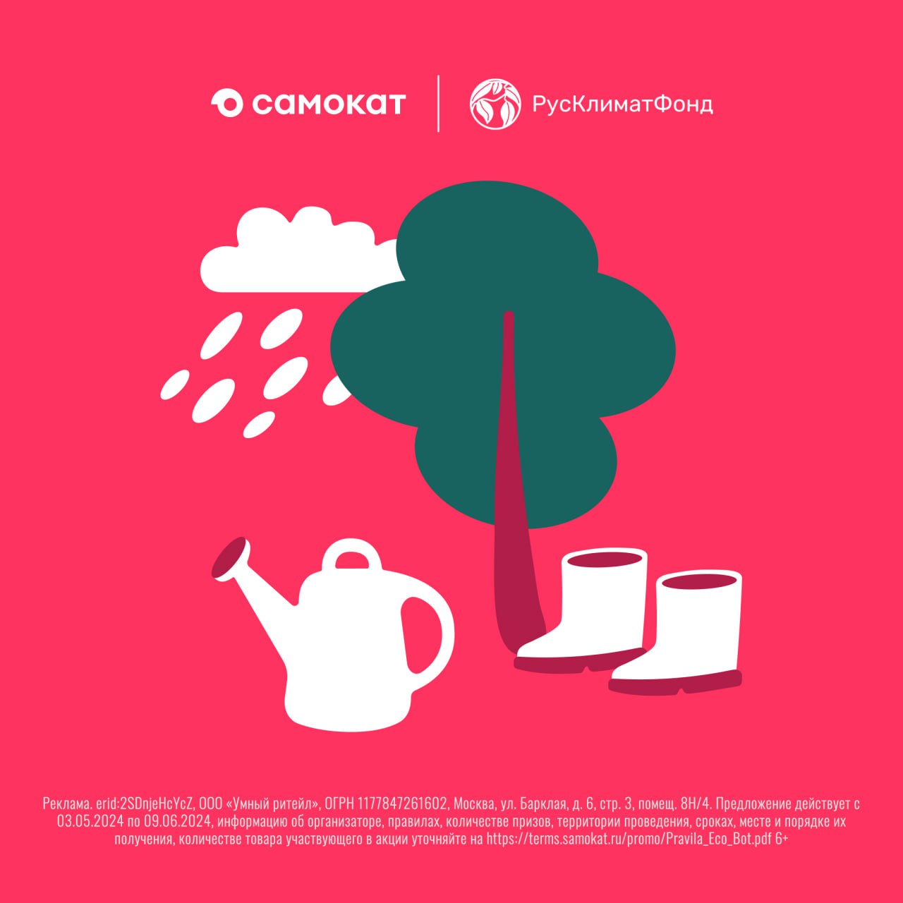 Самокат и РусКлиматФонд запустили совместный проект, в котором может принять участие каждый. Для этого нужно совершить покупку в приложении интернет-магазина Самокат от 1200 рублей с использованием промокода «ДЕРЕВО».