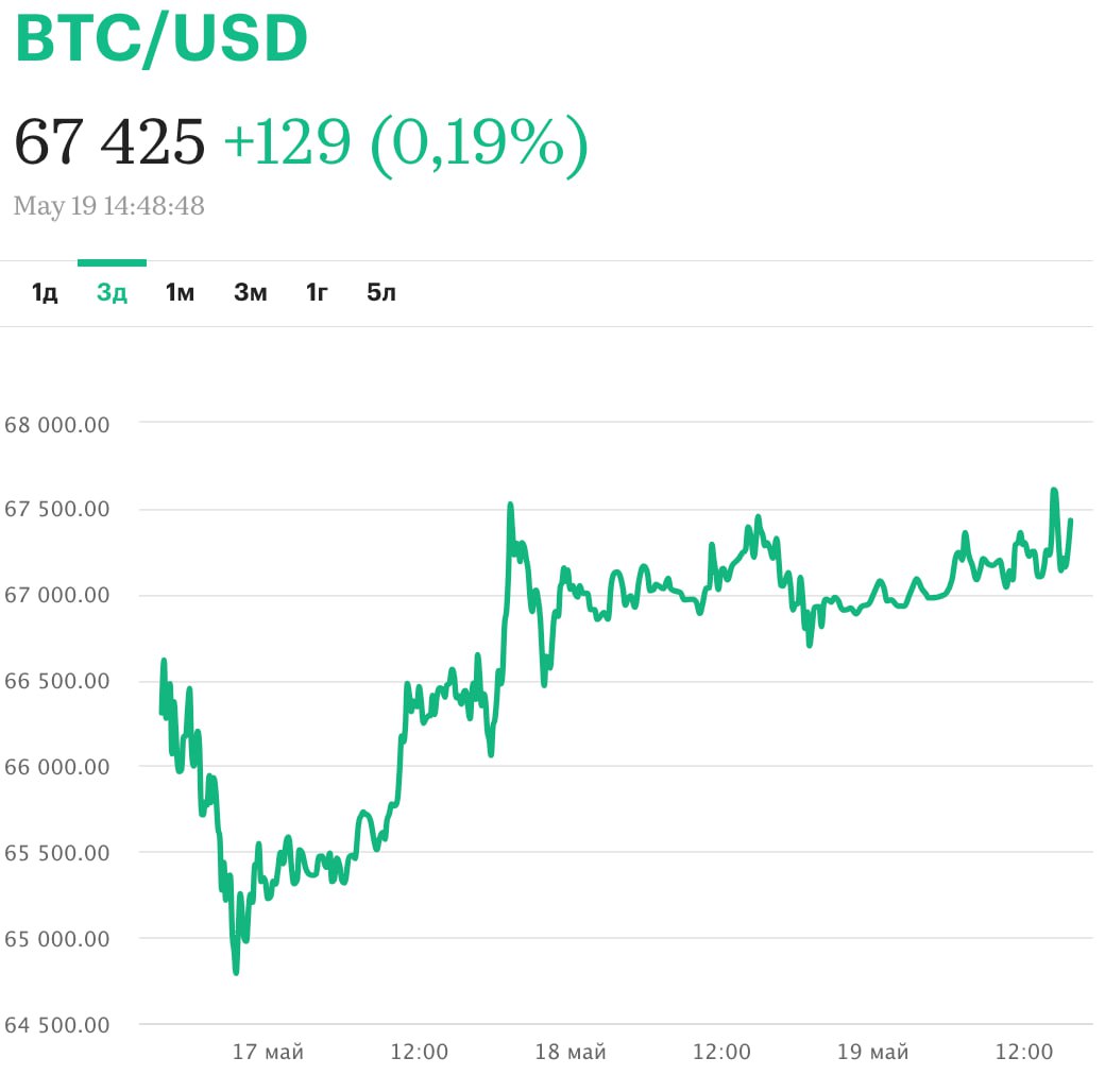 Биткоин торгуется по цене выше 67 000