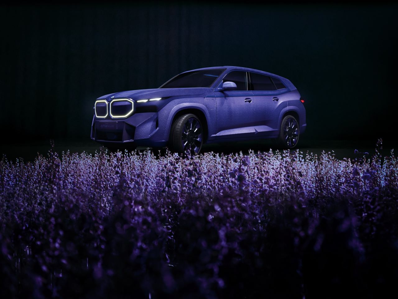 На Каннском кинофестивале была показана лучшая версия гибридного автомобиля BMW XM, покрытого синим бархатом.