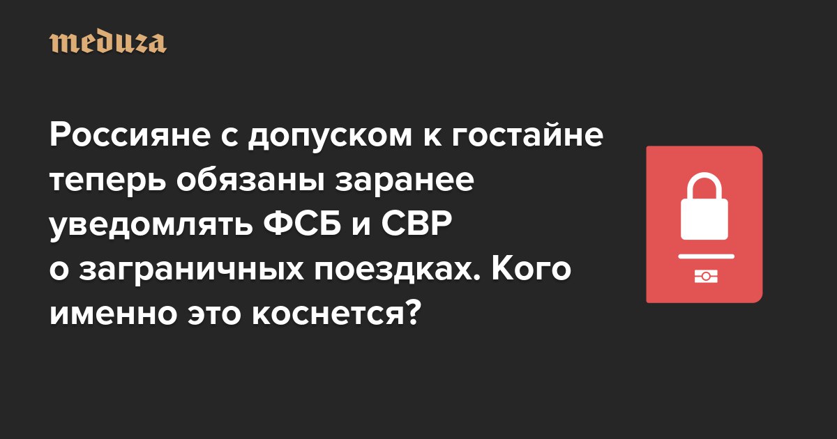 Россияне с допуском к государственной тайне теперь обязаны заблаговременно уведомлять Федеральную службу безопасности (ФСБ) и Службу внешней разведки (СВР) о своих заграничных поездках.