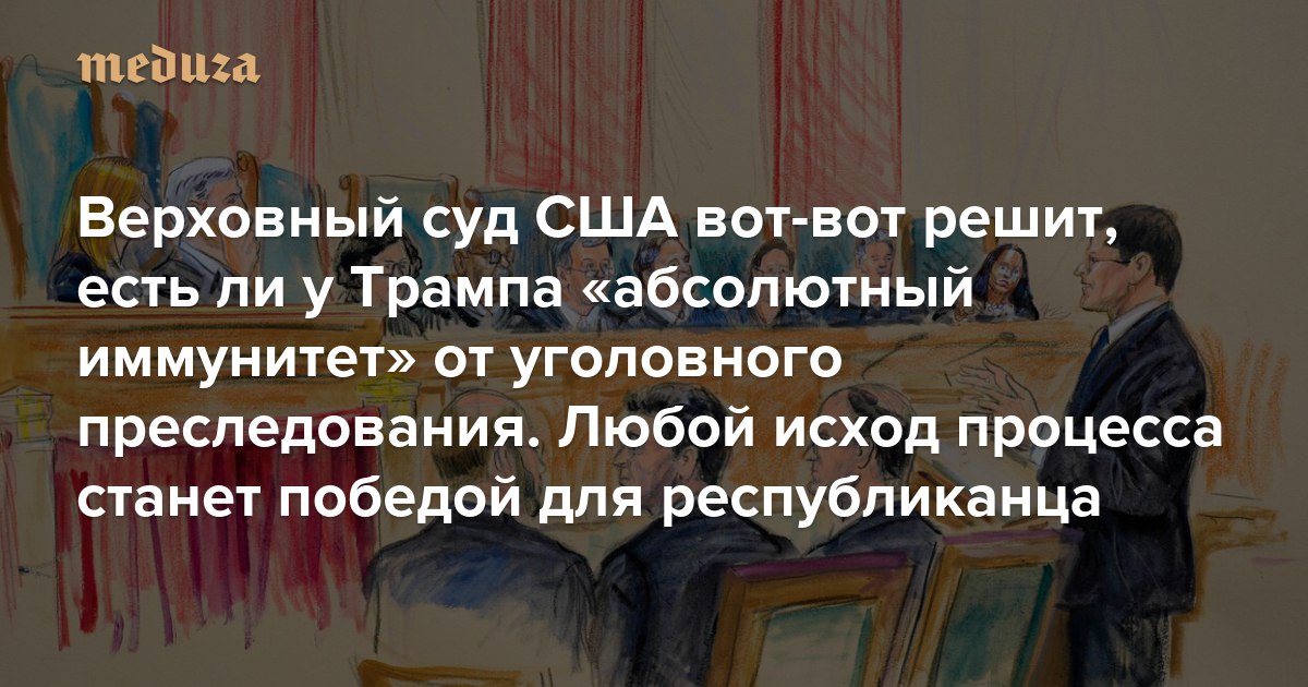 Верховный суд США в ближайшее время решит, имеет ли президент страны Дональд Трамп так называемый абсолютный иммунитет от уголовного преследования.