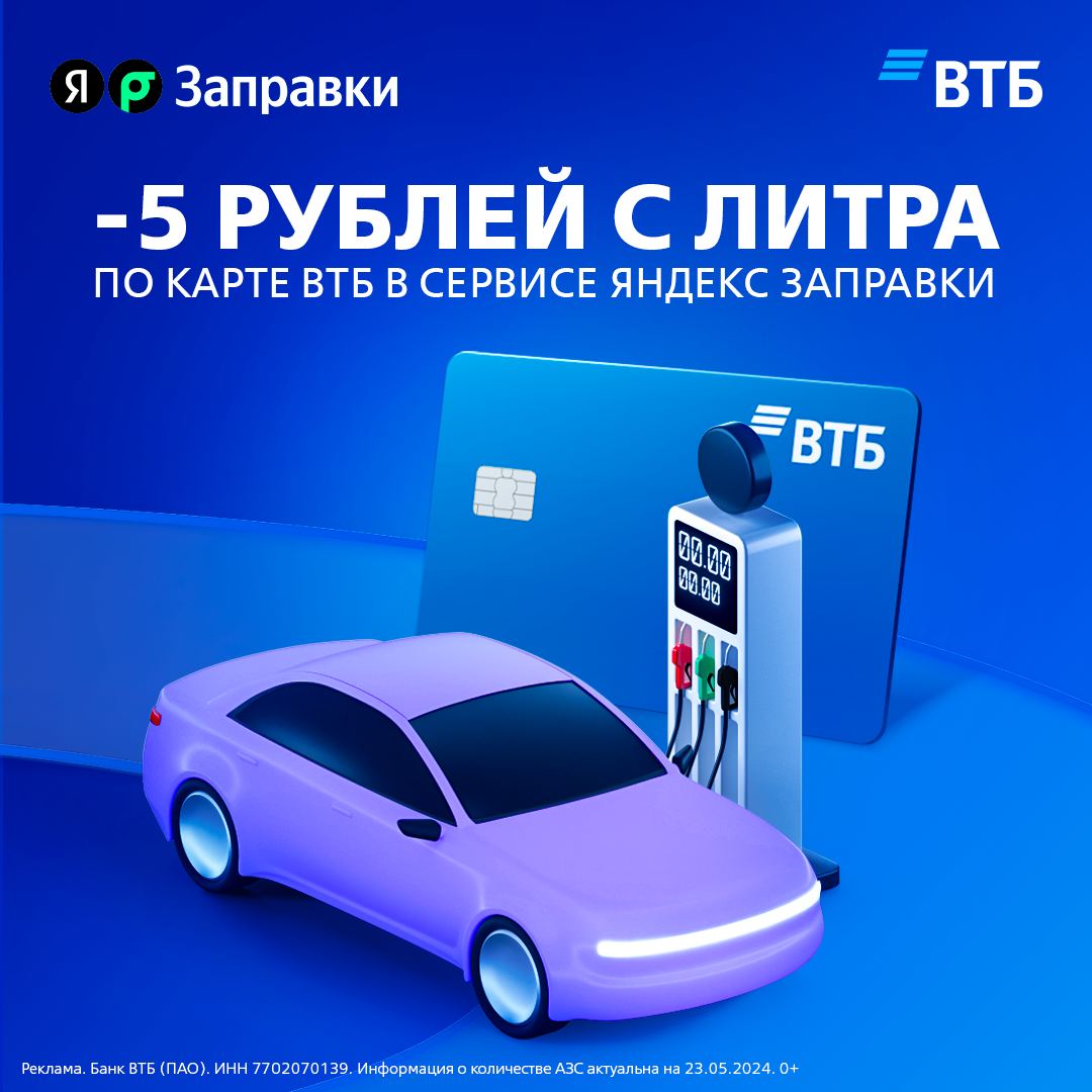 Топливо дешевле на 5 рублей для владельцев карт ВТБ!