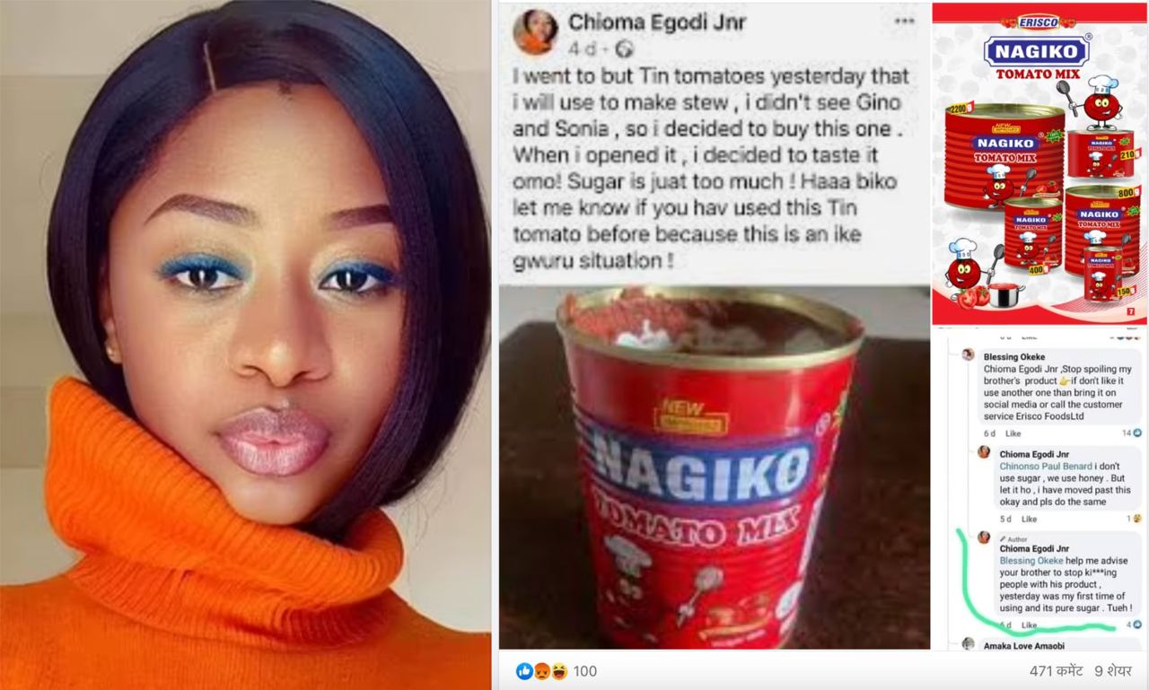 39-летняя Чиома Околи из Лагоса в сентябре 2023 года разместила неоднозначный комментарий о продукте местной компании Erisco Foods. Она назвала продукт «чистым сахаром», а саму компанию обвинила в «убийстве людей».