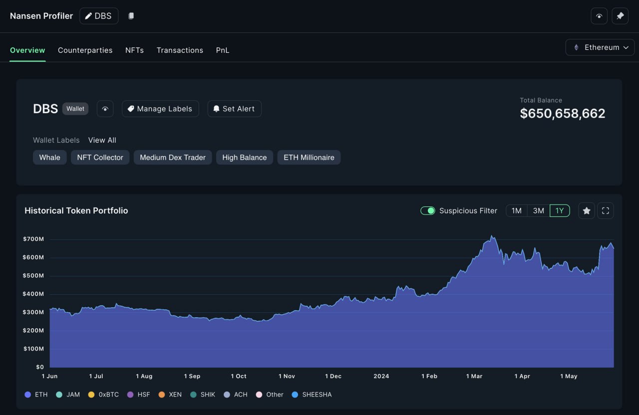 Кошелёк DBS содержит более 173 тысяч ETH,