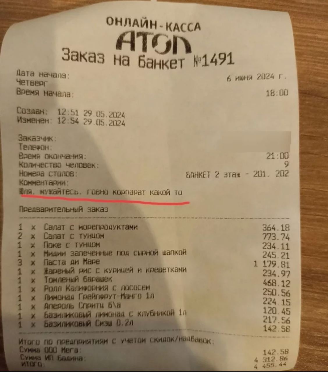 Когда одна из гостей, увидев фразу в чеке, выложила фото в интернет, поднялся общественный резонанс.