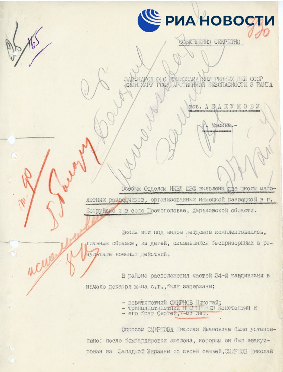 ФСБ опубликовала документы, раскрывающие мрачные страницы Великой Отечественной Войны, связанные с нацистской разведкой и детьми и подростками, оставшимися без родителей.