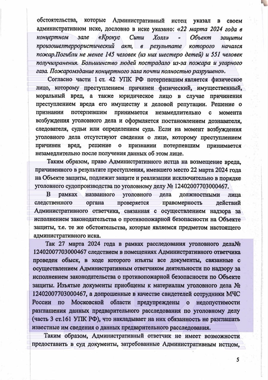 Из возражения на исковое заявление потерпевших стало известно об изъятии документов в здании МЧС Московской области.