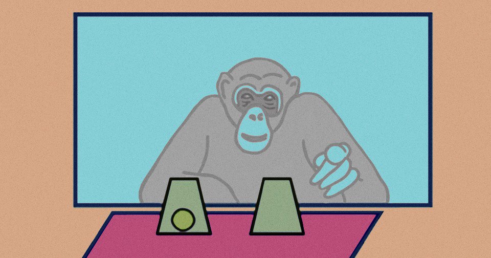 Учёные из Великобритании провели серию экспериментов с шимпанзе из зоопарка и выяснили, что обезьяны, полагаясь на удачу, могут отказаться от первоначального выбора в пользу другой альтернативы, если видят, что изначально выбранная ими чашка пуста.