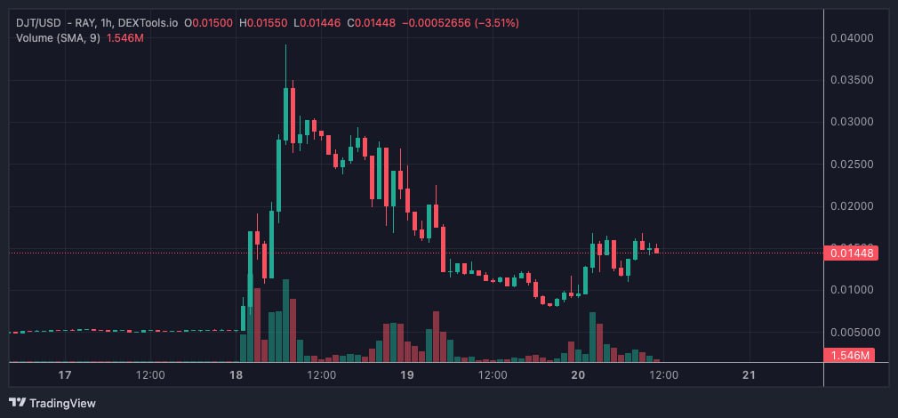 Капитализация TrumpCoin упала с 370 миллионов долларов до 144 миллионов долларов.