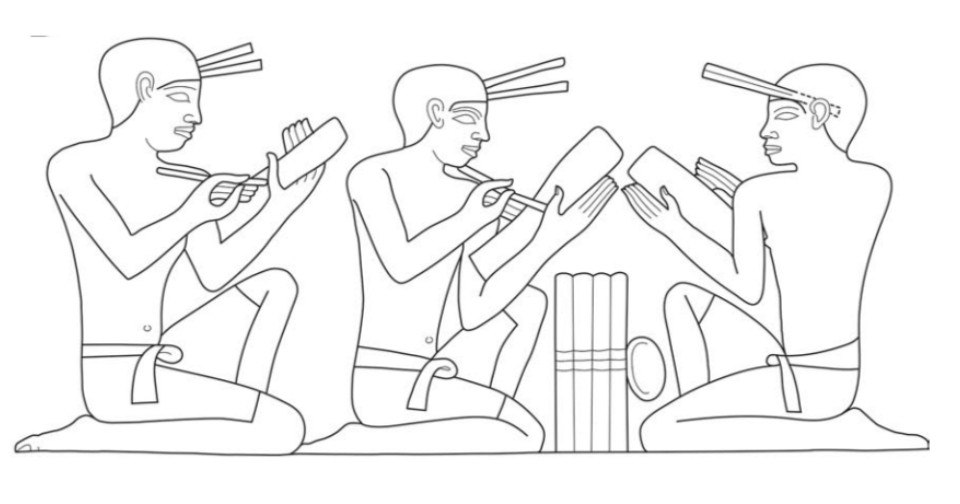Чешские антропологи изучили останки древних египтян из некрополя Абусир, относящихся к III тысячелетию до нашей эры. Исследователи обнаружили группу признаков, по которым можно отличить кости писцов от костей других людей того времени, один из них — остеоартроз височно-нижнечелюстного сустава. Вероятно, писцы имели это заболевание из-за постоянного использования палочек для письма — они грызли их края, создавая кисточки на концах.