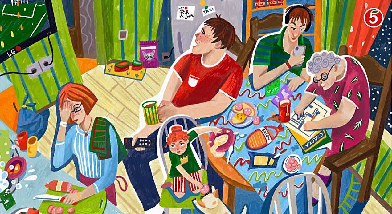 «Глупая и несмешная шутка», «Обновленная программа обучения», «Сценарий фильма», «Усредненная семья потребителей», «Череда бытовых трудностей», «Совместный отдых», «Любимые кошки».