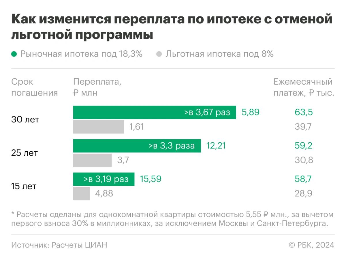 — Аналитики ЦИАН рассчитали, что переплата за квартиру при отмене льготной ипотеки вырастет: