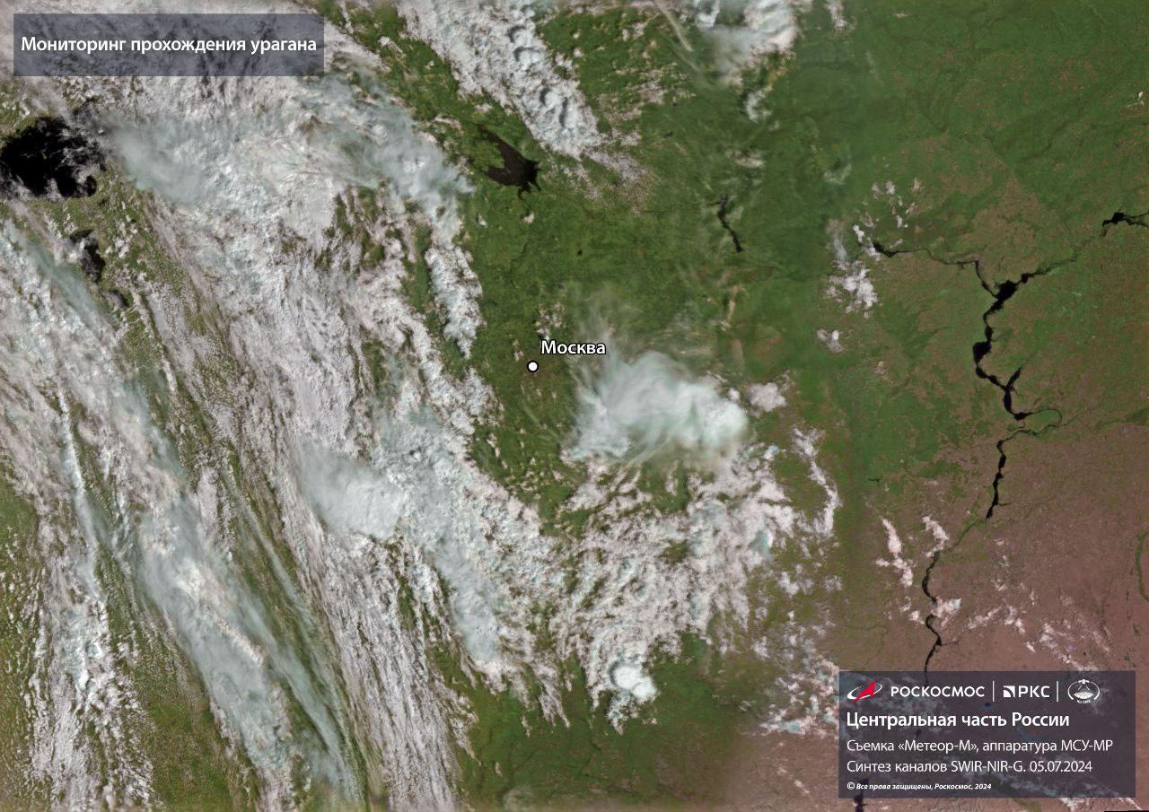 «Роскосмос» показал, как выглядит надвигающийся на Москву ураган со спутника. Непогода уже накрыла Подмосковье — по информации на сайте Гидрометцентра, в столице введён «жёлтый» уровень погодной опасности. Как говорят специалисты, ненастье может принести порывистый ветер скоростью до 20 м/с, а также ливни и грозы. По данным «Роскосмоса», особенно сильный ветер будет наблюдаться в период с 18:00 до 21:00.