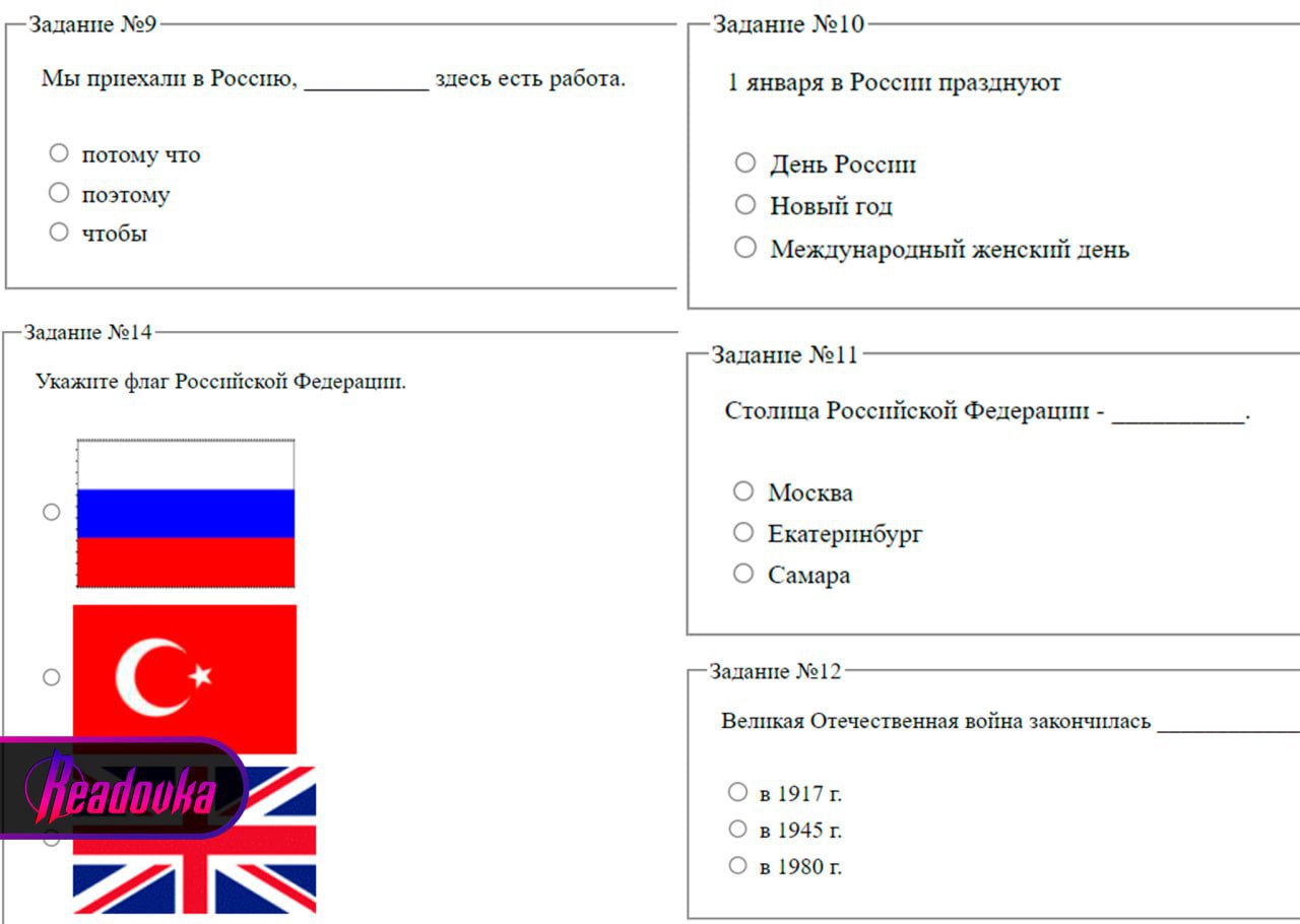 Стоит также отметить, что сложность предложенных вопросов вызывает сомнения. Например, на вопрос «Как выглядит флаг России?» предлагается выбрать из вариантов ответа «российский триколор» и «турецкий флаг». На вопрос, где надо отличить флаг РФ от британского, также предлагается несколько вариантов ответа. На вопрос о столице России можно выбрать варианты «Москва», «Екатеринбург» или «Самара». Это вызывает сомнение в том, что экзамен действительно примитивен и его невозможно «завалить».