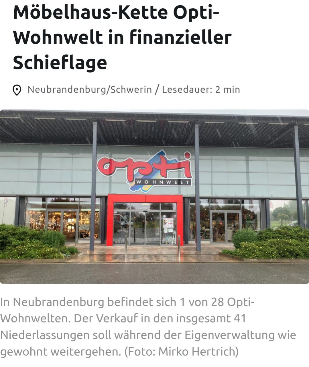 В Германии обанкротилась Opti-Wohnwelt, став ещё одной популярной мебельной компанией в списке тех, кто увольняет сотрудников: среди них Capgemini, RTL Group и другие.