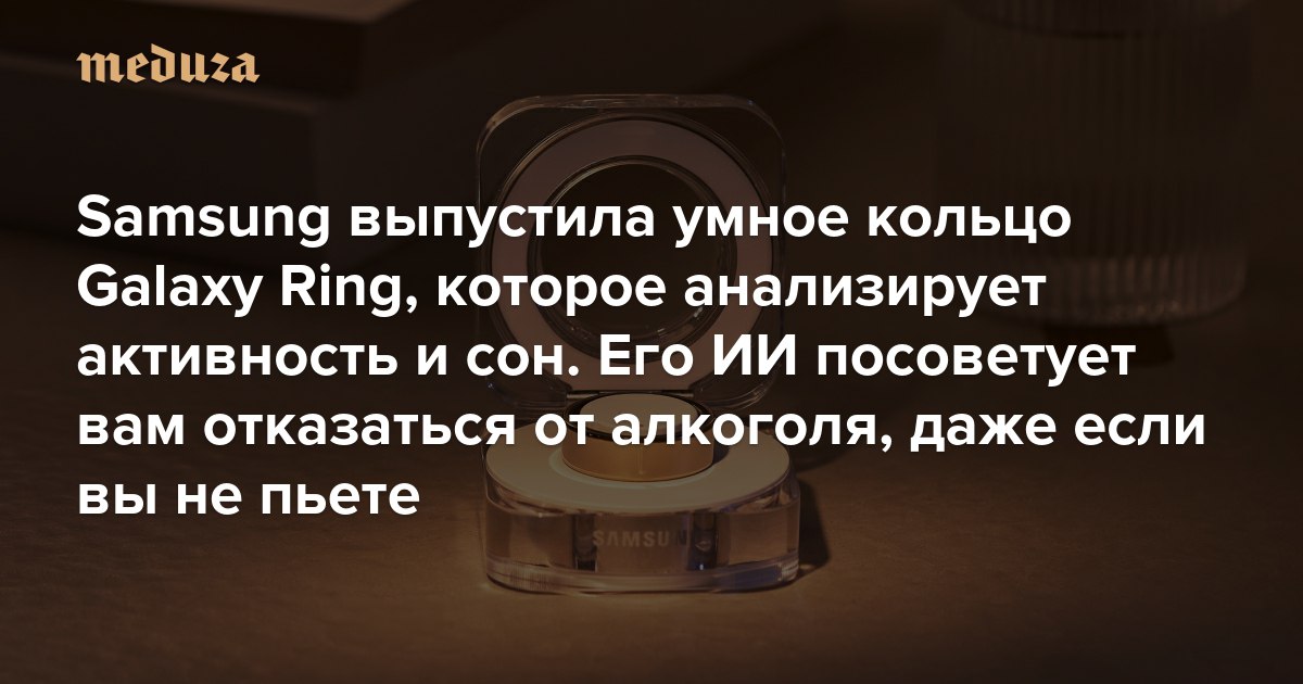 Эксперты утверждают, что Galaxy Ring может анализировать уровень сахара и алкоголя в организме. Если устройство обнаружит высокий уровень алкоголя в крови пользователя, то предложит ему отказаться от употребления спиртных напитков.