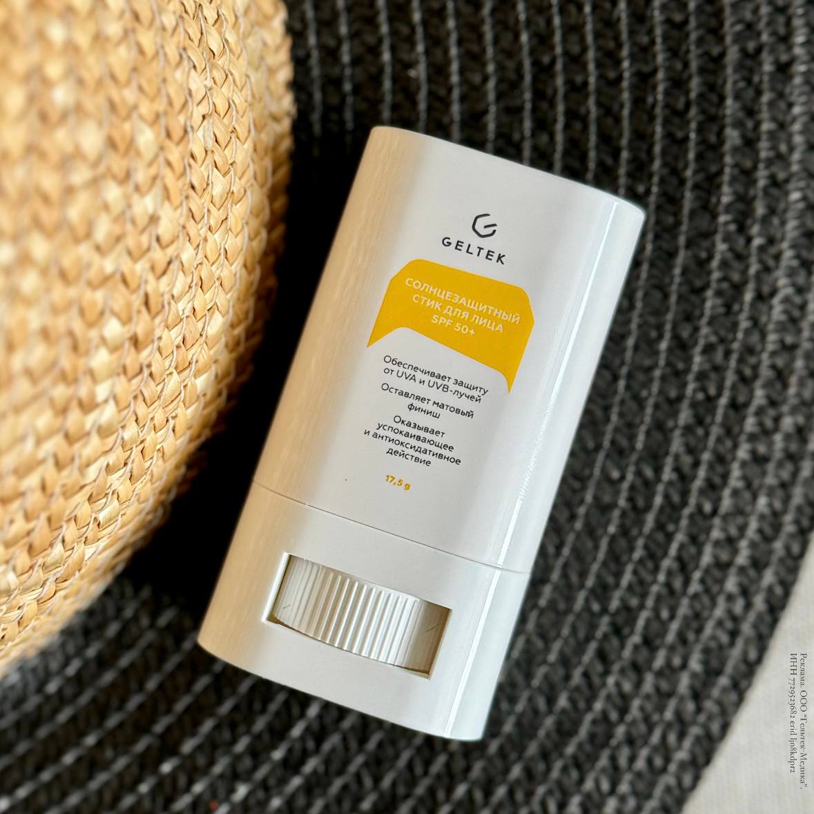 Этот код создаёт веб-страницу с информацией о выпуске солнцезащитного стика от компании Гельтек. В тексте описаны форма и использование продукта, его защитные свойства, а также рекомендации по применению и для кого он подходит.