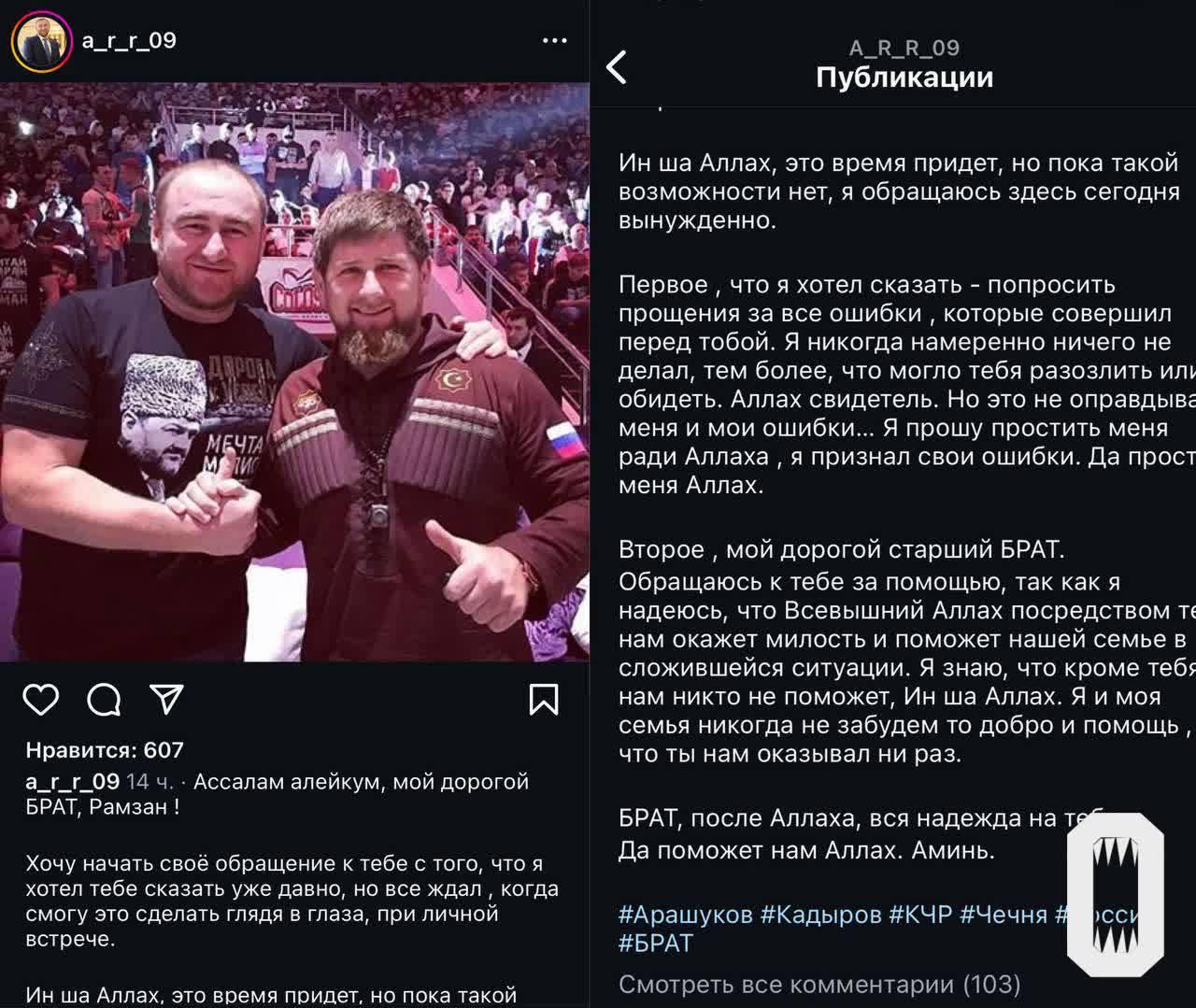 В своём сообщении он просит прощения за «все ошибки, которые совершил перед» Кадыровым, и добавляет, что «никогда намеренно ничего не делал, тем более что могло тебя разозлить или обидеть». Засвидетельствовать это может Аллах.