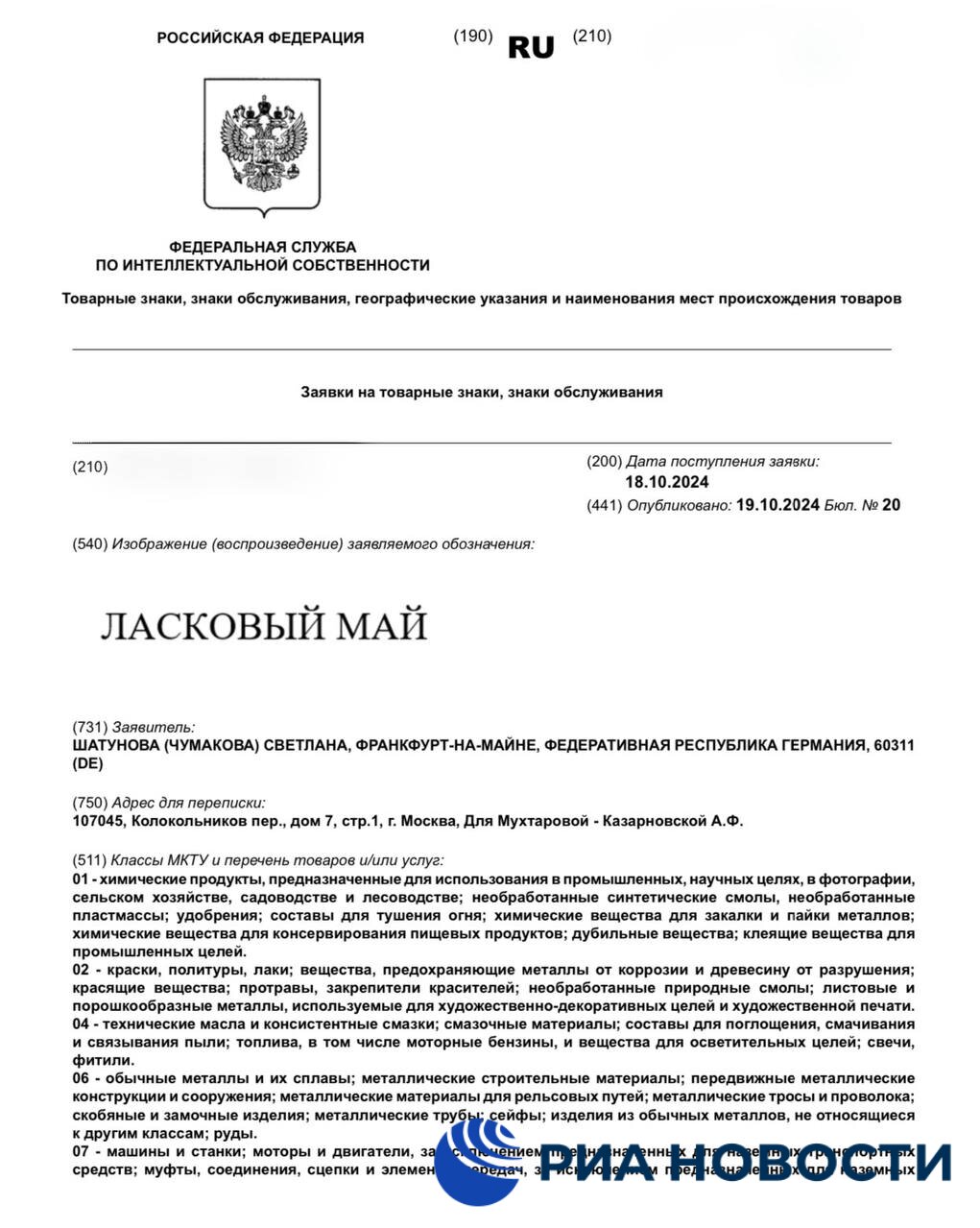 Светлана, вдова солиста группы «Ласковый май» Юрия Шатунова, подала две заявки на регистрацию товарного знака «Ласковый май».