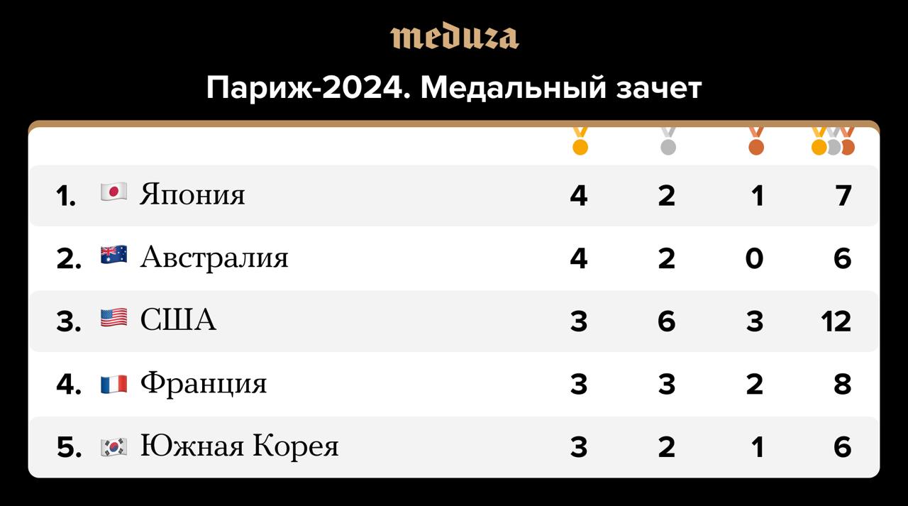 Культура Япония лидер медального зачёта по итогам третьего дня Олимпиады в Париже Игорь Орехов30.07.2024
